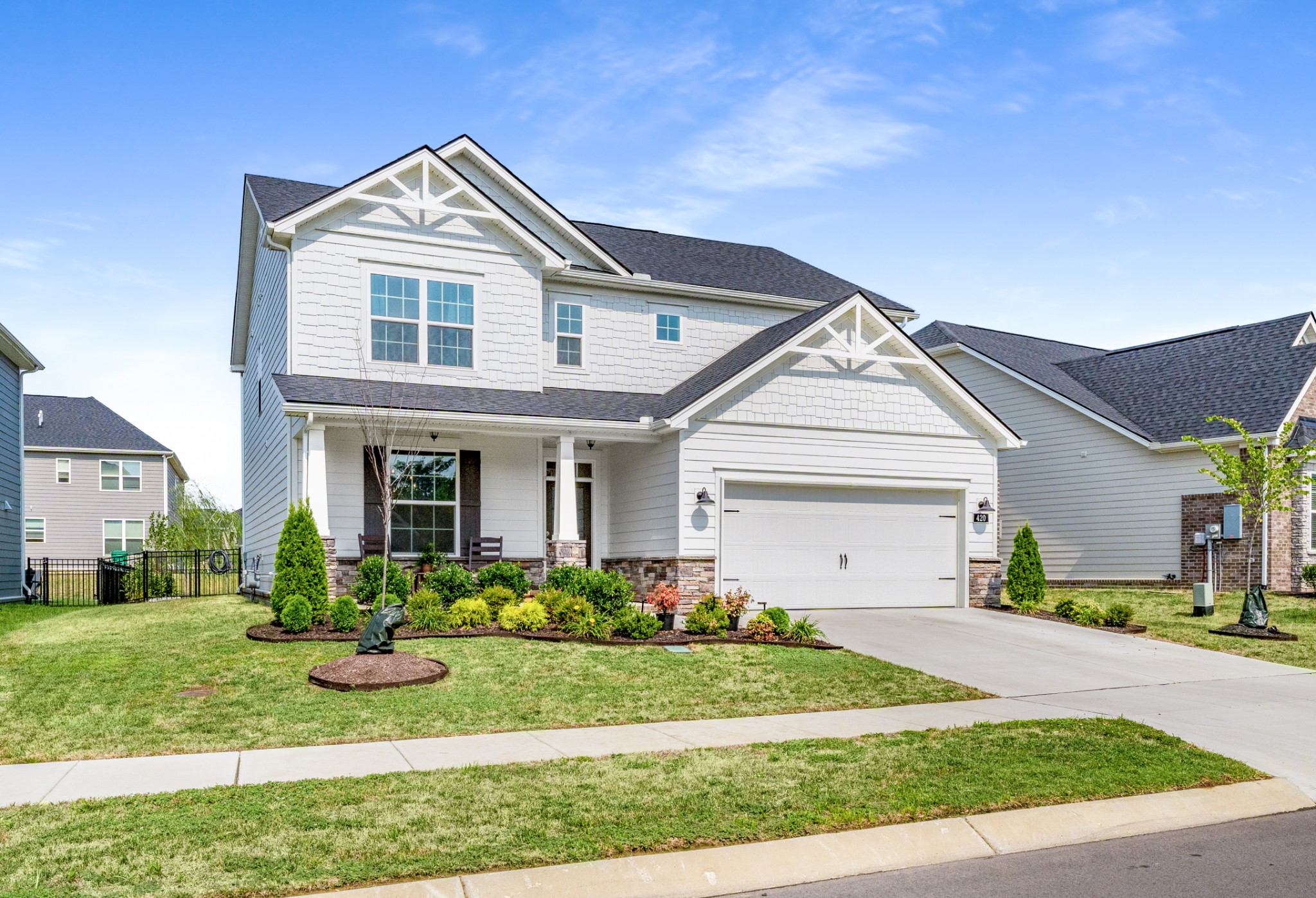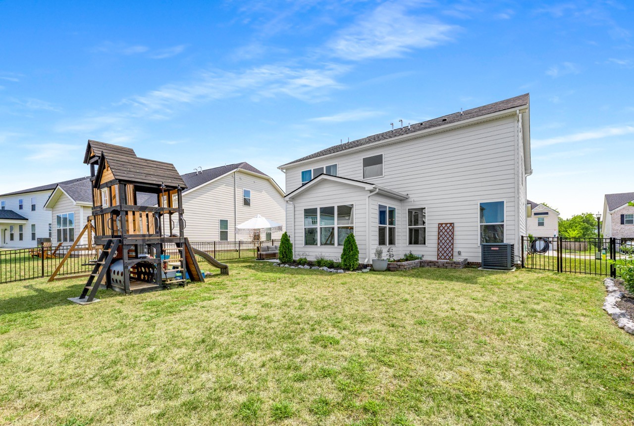 Welcome home to Waverly in Mount Juliet! This home w/ $50k in upgrades during construction has been further customized to perfection since completion w/ an additional $30k in improvements making it truly stand out from all other homes in the neighborhood. Fall in love the moment you pull into the drive & take in the classic, white exterior w/ shingle & stone accents & spacious front porch. Through the front door you'll find an elevated interior w/ designer lighting throughout, lush draperies, & stunning trim work. Pass the spacious office off the main entry hall into the heart of the home where you'll find the open concept living, dining, kitchen w/ light-filled sunroom upgrade leading out to the fully fenced backyard w/ patio, swing set, & beautiful landscaping. The pristine kitchen features quartz countertops & a crisp, white color scheme w/ natural wood shelving, Brizo faucet, & accent lighting. The pantry w/ custom built-ins provides excellent storage & room for a coffee bar. Upstairs you'll find a spacious bonus room which leads to the four bedrooms. The oversized primary suite is a private oasis w/ tray ceiling & ensuite bath complete w/ double vanities, separate soaker tub & walk-in shower w/ frameless glass & tile surround plus a toilet room & walk-in closet! Guest bedroom one includes a private ensuite bath while guest bedroom two & three share a hall bath w/ double vanities. There's SO much to love about this gorgeous property & desirable community, so come find out why so many have chosen to call Waverly home!